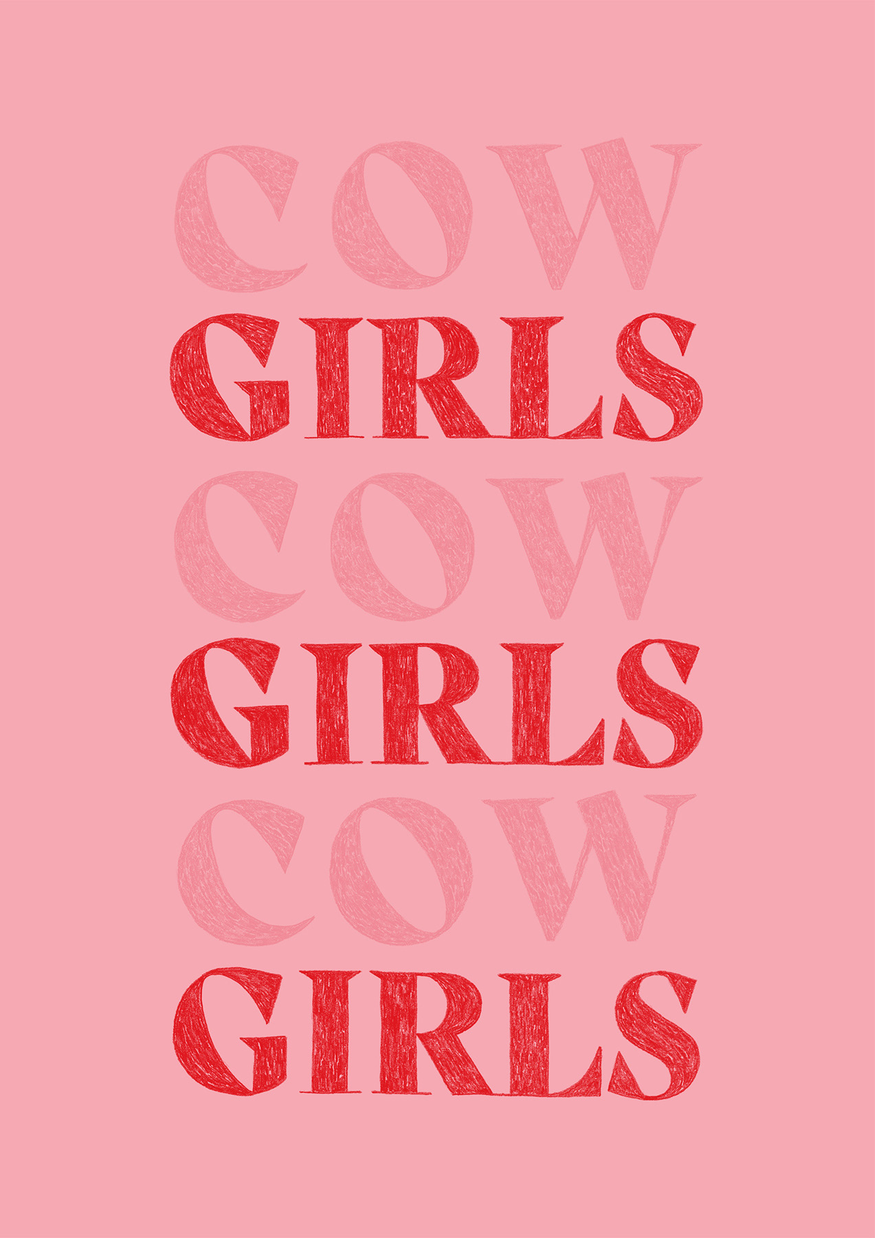 Hand drawn in pink and red and available at