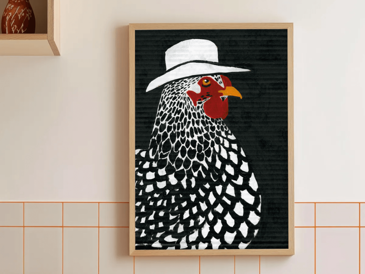 A gouache painting of a beautiful finch stepping out. Available as a print