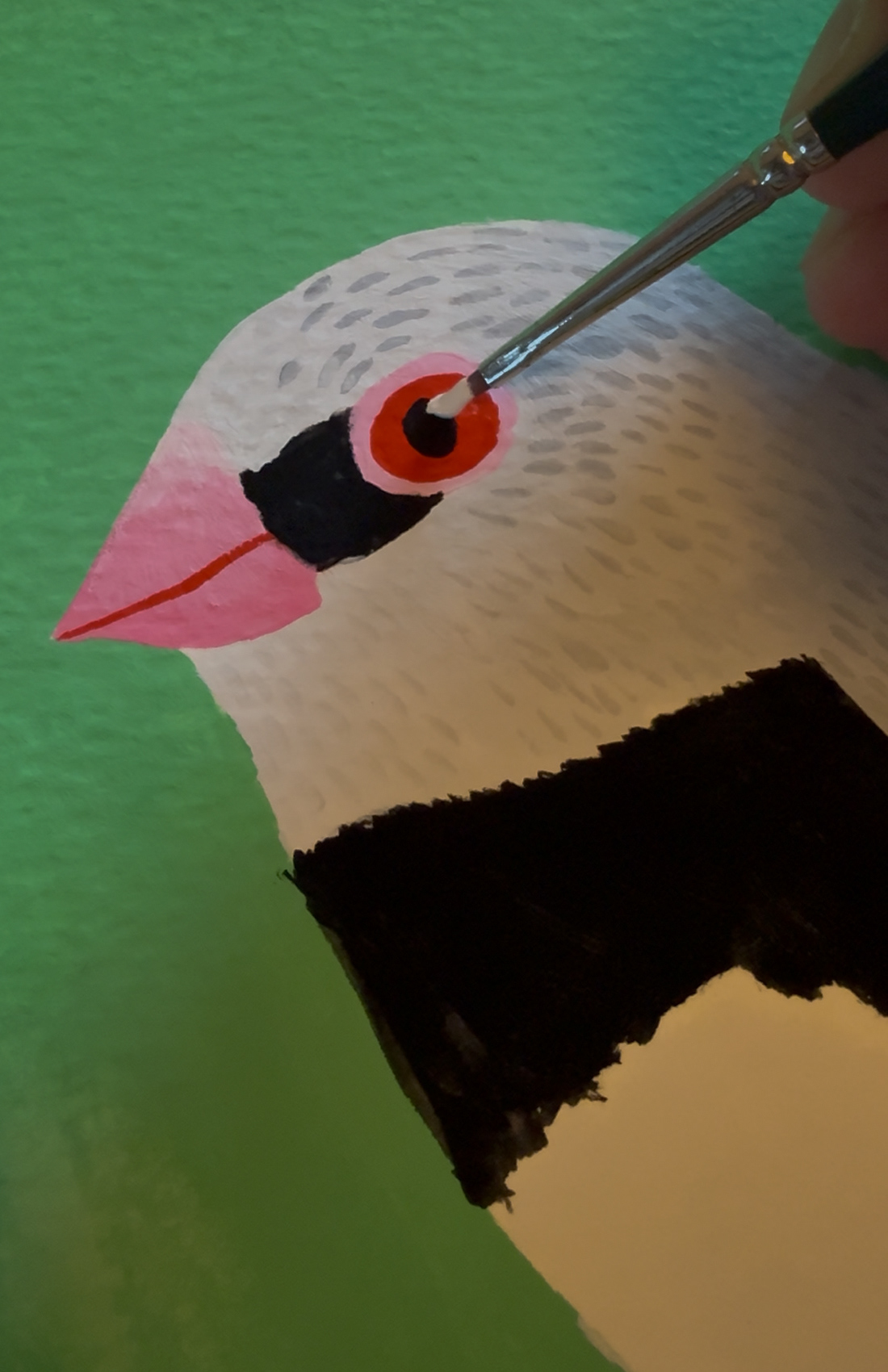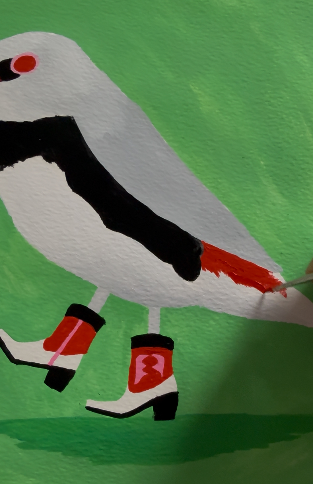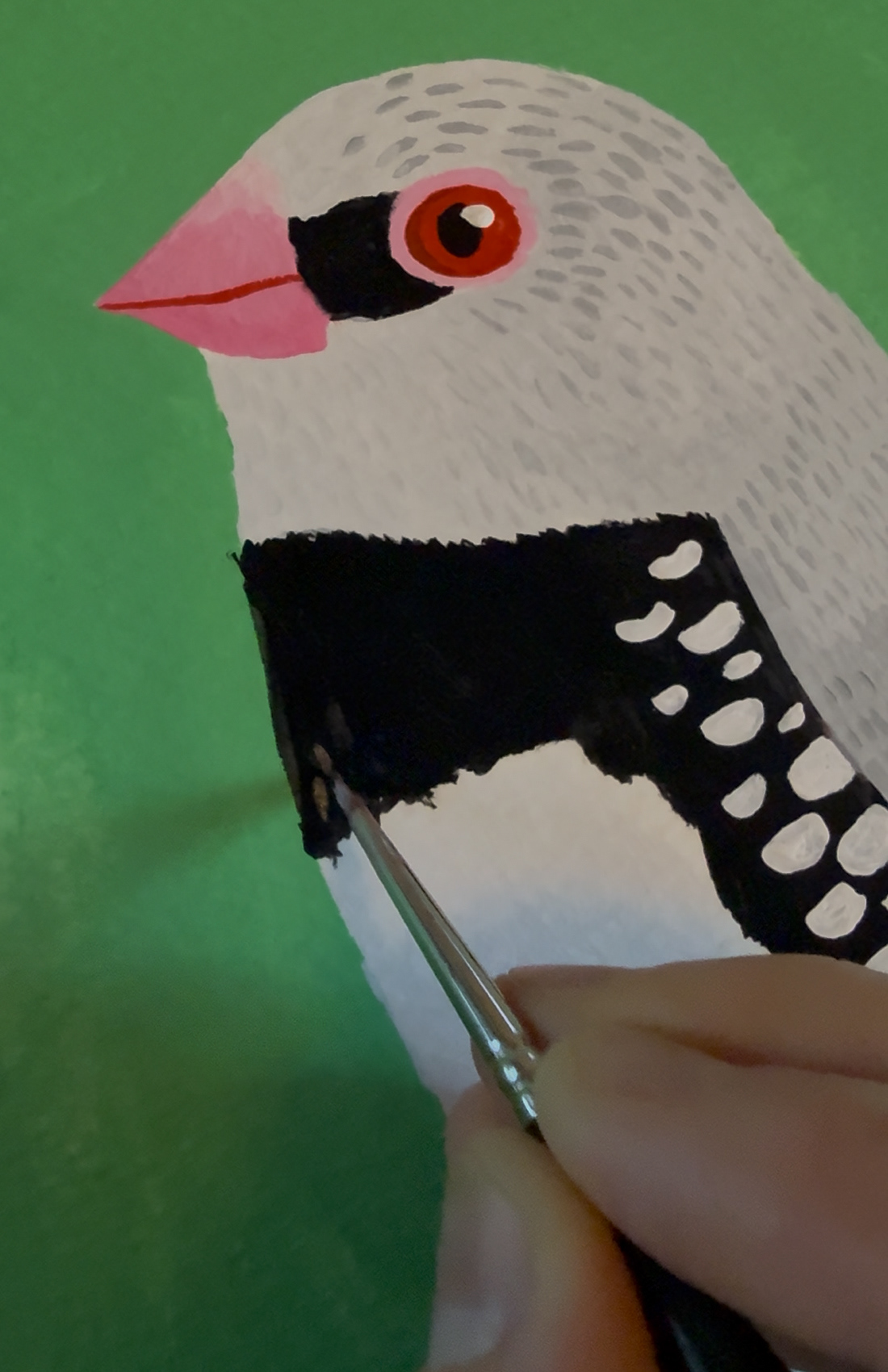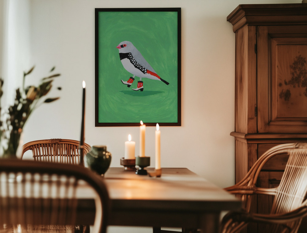 A gouache painting of a beautiful finch stepping out. Available as a print or canvasĀ