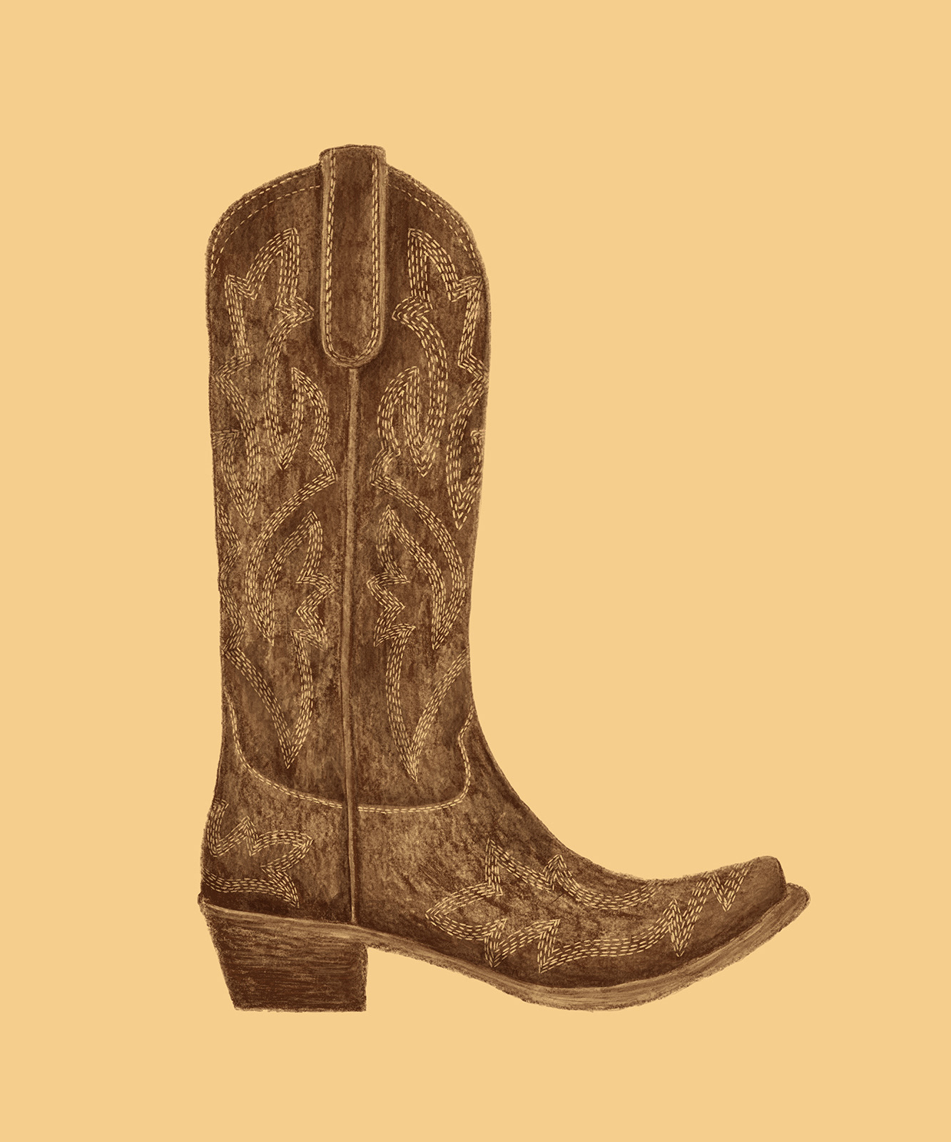 Hand drawn cowgirl boot - worked into a repeat pattern for